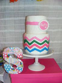 | Next to the cake was a handmade letter S for Sophie. This was decorated using matching printout patterns and Ric-rac. The birthday girl was able to keep her 'S' as a memento from her birthday party. |